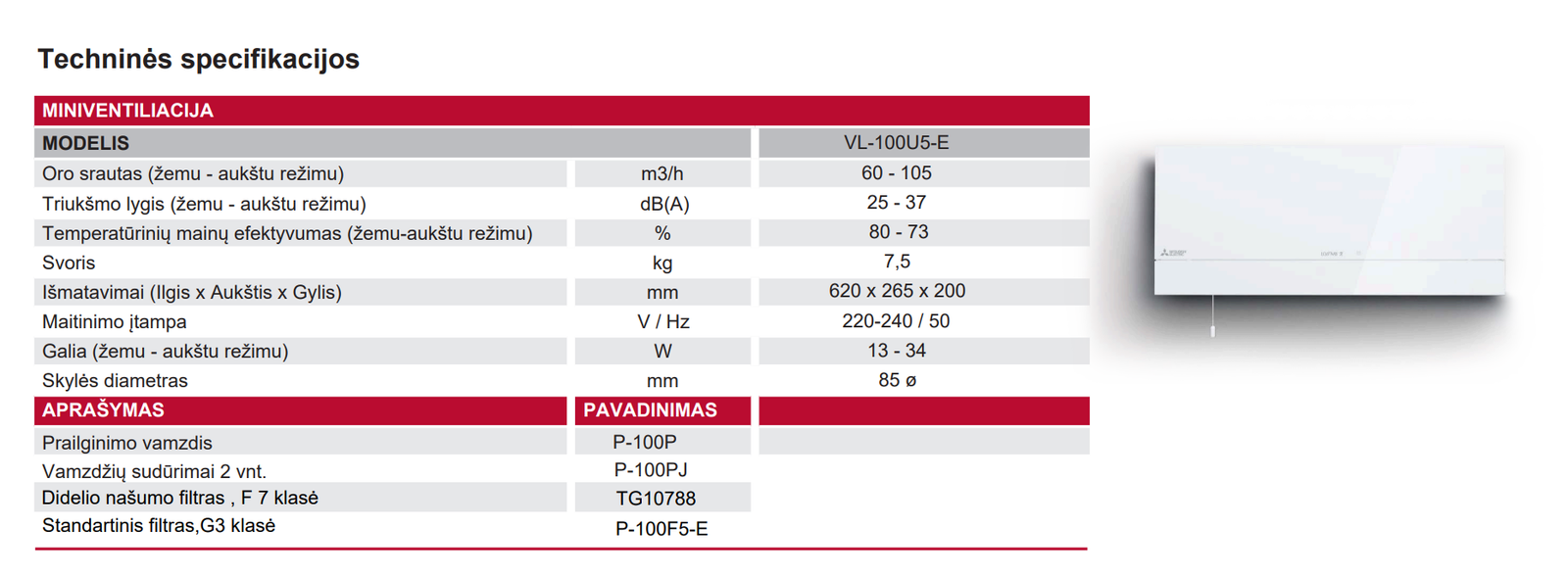 Mitsubishi mini rekuperatorius VL-100U5-E